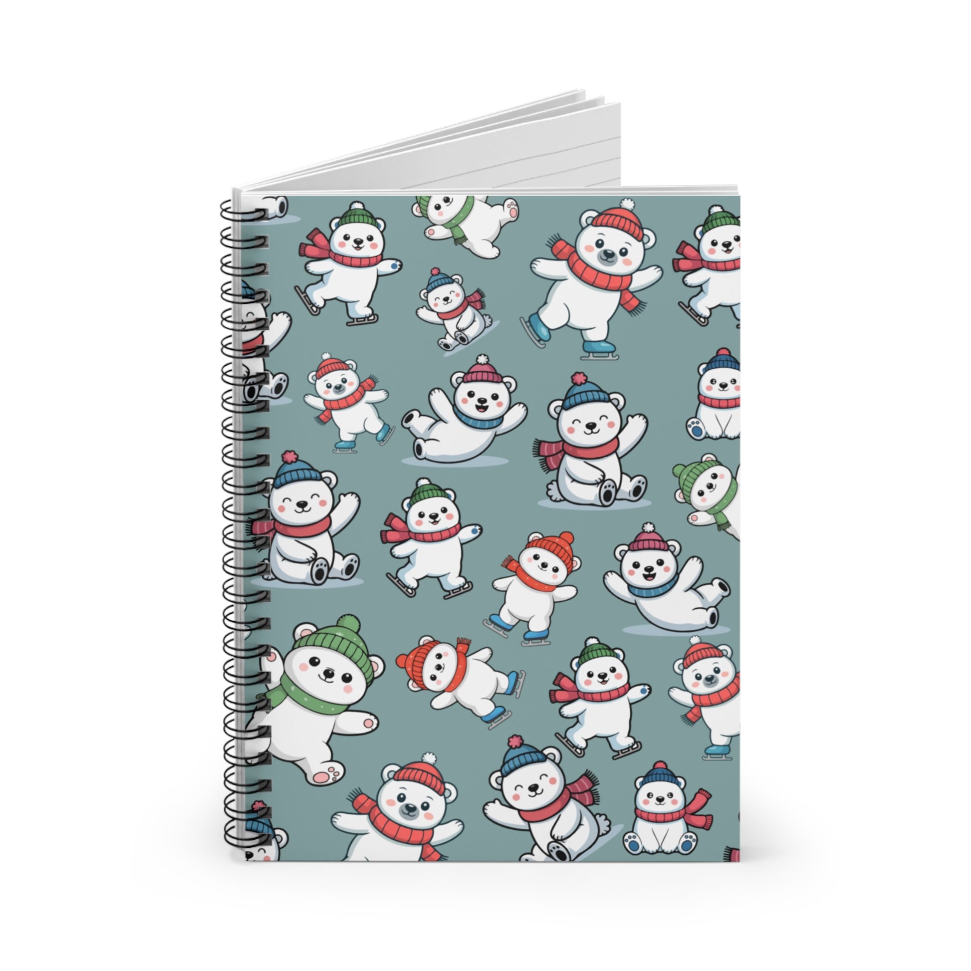 Cute Polar Bear Pattern Spiral Notebook — Holiday Snowman Bears Ruled Journal