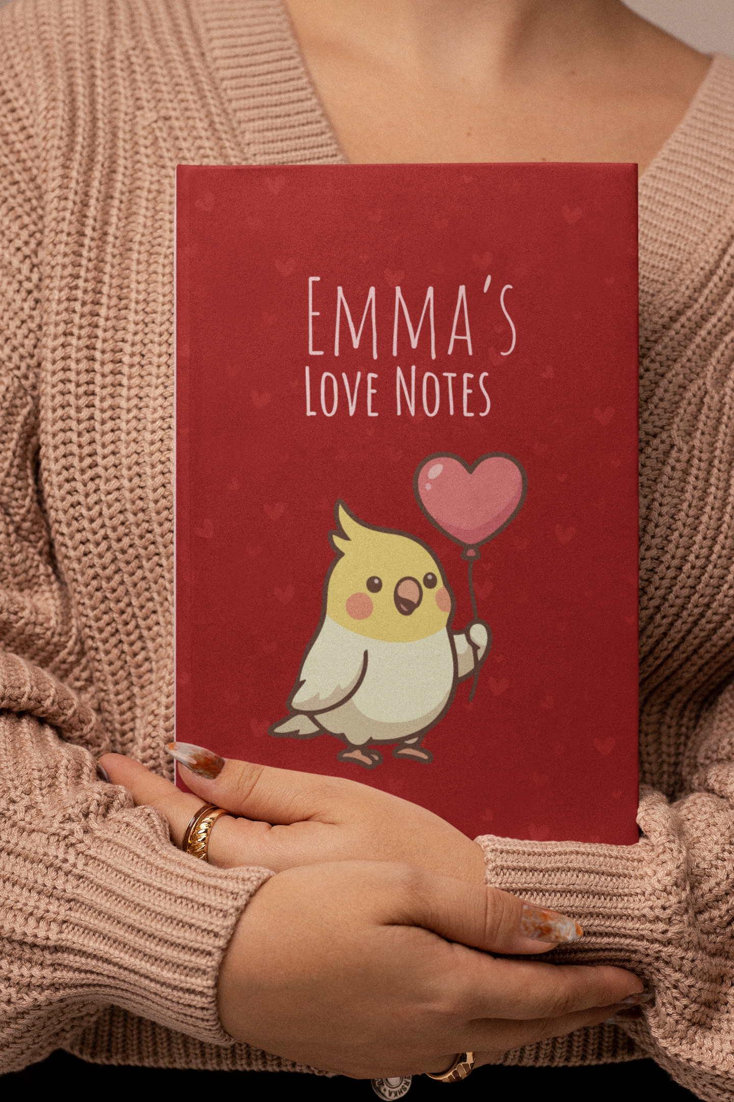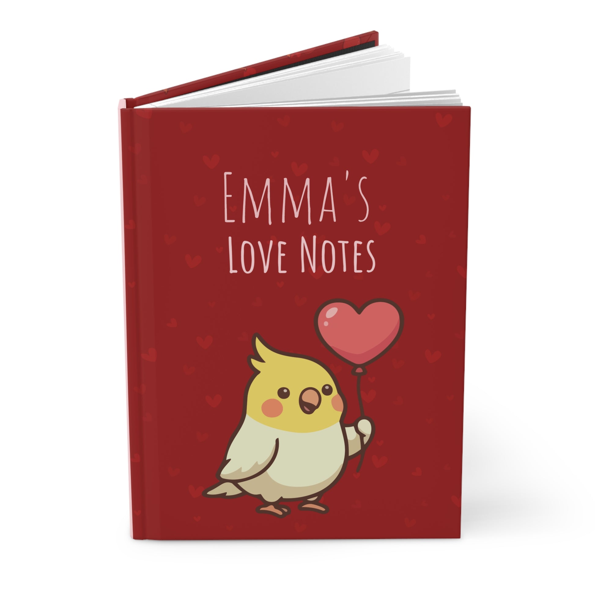 Personalized Valentine Hardcover Journal | Cockatiel Heart Balloon Notebook | Custom Love Notes Gift