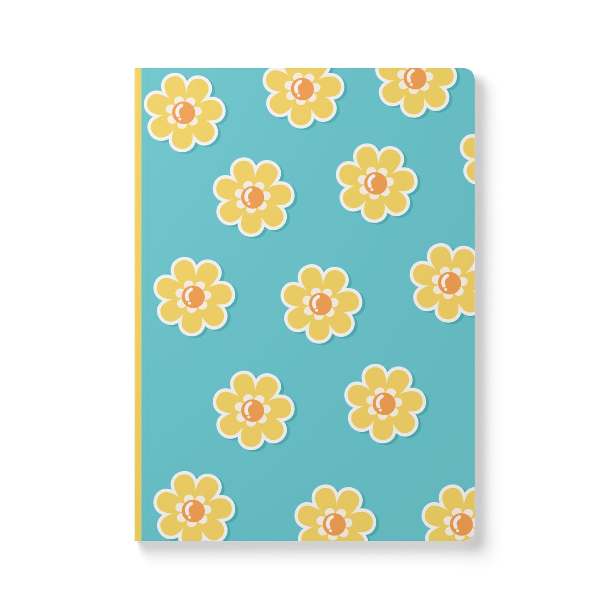 Add a bright, cheerful touch to your daily writing with this turquoise floral softcover journal. Designed with a playful yellow bloom pattern and a smooth satin finish, this notebook is perfect for journaling, note-taking, lists, and creative ideas.